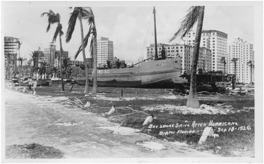 Taken on September 18th, 1926 shows an entire ship that has been washed ashore by the hurricane’s