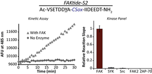 - Beck, J.R.; Zhou, X.; Casey, G.R. & Stains, C.I. Design and Evaluation of a Real-time Activity Probe for Focal Adhesion Kinase. Anal. Chim. Acta 897, 62-68 (2015). [Link]