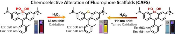 - Fang, Y.; Good, G.N.; Zhou, X. & Stains, C.I. Phosphinate-Containing Rhodol and Fluorescein Scaffolds for the Development of Bioprobes. Chem. Commun. 55, 5962-5965 (2019). [Link]