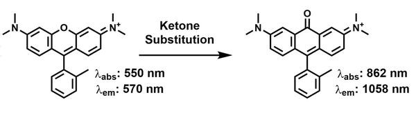 - Brøndsted, F. & Stains, C.I. Heteroatom-Substituted Xanthene Fluorophores Enter the Shortwave-Infrared Region. Photochem. Photobiol. 98, 400-403 (2022). [Link]