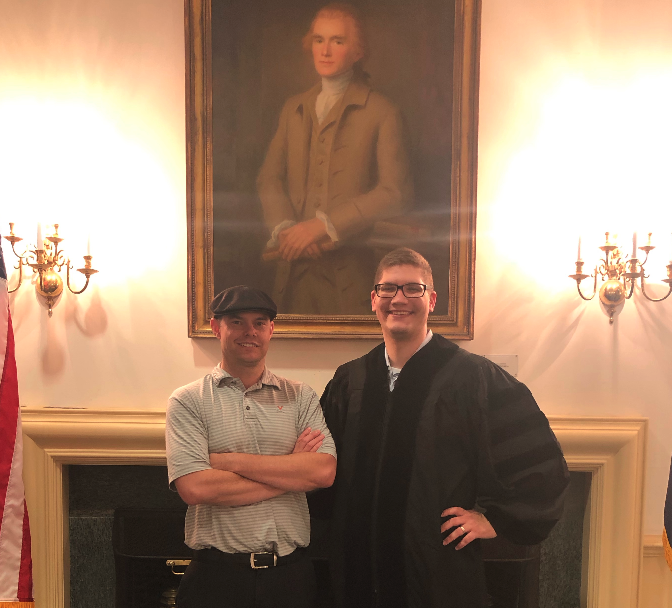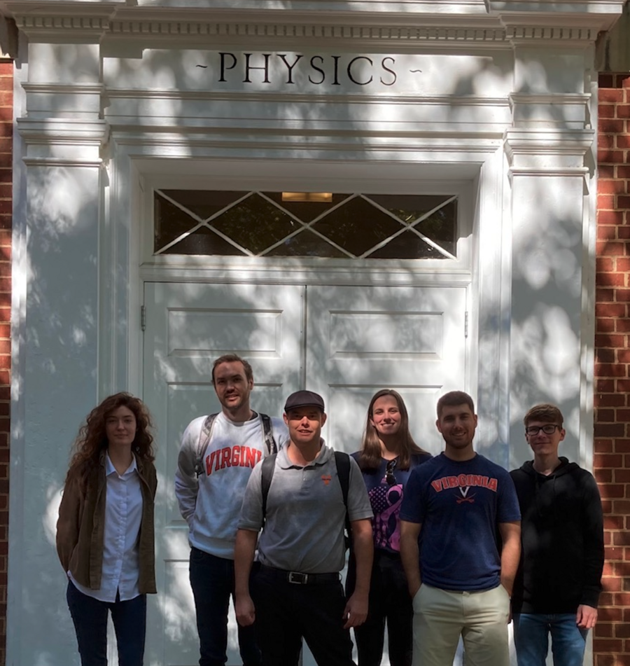 We were able to get a photo of some of the group in front of the UVA Physics building in Fall 2022/