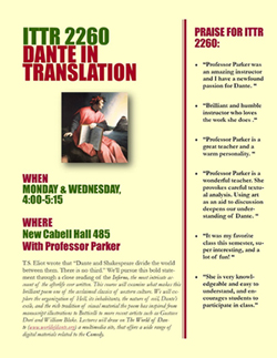 T.S. Eliot wrote that “Dante and Shakespeare divide the world between them. There is no third.” We’ll pursue this bold statement through a close reading of the Inferno, the most intricate account of the afterlife ever written. We will explore the organization of Hell, its inhabitants, the nature of evil, and the rich tradition of visual material the poem has inspired from manuscript illustrations to contemporary artists.