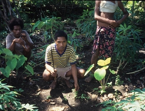 planted next to a young taro plant. Iwa people