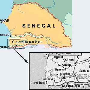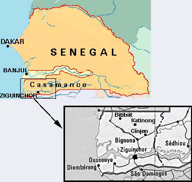 This web site, which is under construction, will make available on the web Folklore and Language materials collected in the 1960s among the Kujamaat Jóola (Diola Fogny) who live in the Casamance region of Sénégal. On the above map the people can be found in the area including the town of Bignona and the villages to the North, including Bitibiit, Katinong, Sindian etc.