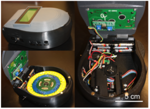 In the Landers lab we have developed centrifugal microdevices that use a range of rotational speeds to generate fluid movement through the microfluidic architecture. This greatly reduces the complexity of the system, and allows the devices to be operated using inexpensive repurposed hardware. Currently we have used the components of a CD player, as well as 3D printed parts, to construct a compact rotating system for our microdevices that can also perform cell-phone analysis of samples.