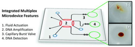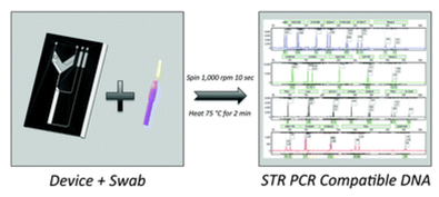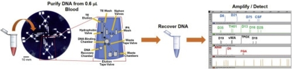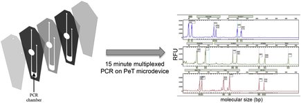 Lounsbury, J.A., Karlsson, A., Miranian, D.C., Cronk, S.M., Nelson, D.A., Li, J., Haverstick, D.M., Kinnon, P., Saul, D., Landers, J.P. 2013. From Sample to PCR Product in Under 45 Minutes: A Polymeric Integrated Microdevice for Clinical and Forensic DNA Analysis, Lab Chip 13(7):1384-93.