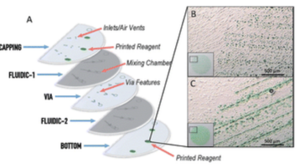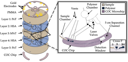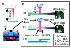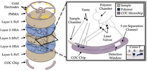 Y. Ouyang, J. Li, C. Phaneuf, J. P. Landers. "Multilevel fluidic flow control in a rotationally-driven polyester film micro device created using laser print, cut, and laminate." Lab on a Chip. 2015, 16(2), 377-387.