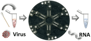 Turiello, R.; Dignan, L. M.; Thompson, B.; Poulter M.; Hickey J.; Chapman J.; Landers J. P., Centrifugal Microfluidic Method for Enrichment and Enzymatic Extraction of Severe Acute Respiratory Syndrome Coronavirus 2 RNA. Analytical Chemistry 2022. https://pubs.acs.org/doi/10.1021/acs.analchem.1c05215