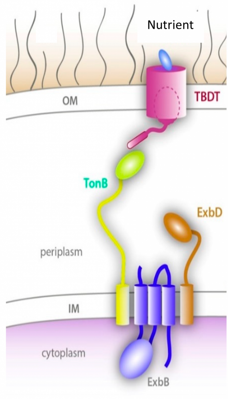 Previous research has utilized a common method of purifying or partially purifying the protein and reconstituting it in a ‘model membrane’, essentially a lipid bubble, and studying protein behavior. This research suggested that upon nutrient binding, BtuB undergoes a structural change where the TonB-box unfolds and extends into the periplasm, the space between the inner and outer membrane. It is hypothesized that this event facilitates the interaction between BtuB and TonB, however no other conformational changes to the core domain of the protein were observed. Thus, in the absence of any other route for nutrient permeation, researchers hypothesize that TonB pulls the TonB-box, resulting in the unfolding of the core domain of the protein, allowing for bound molecules to pass through the core of BtuB and into the cell. An important limitation to this research is that it was all done outside of the native outer membrane environment, using purified or partially purified BtuB, which is incapable of transport.