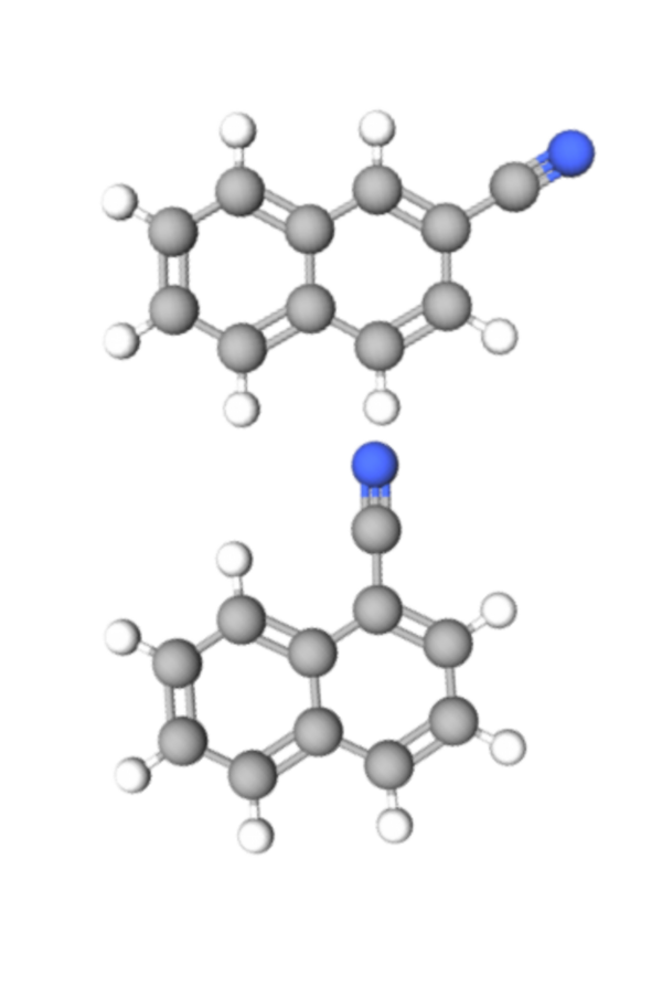 The specific detection techniques used in this paper, stacking and matched filtering, allowed collaborators to identify two isomeric polar cyanonaphthalene (CNN) molecules within TMC-1 (Fig. 5).Graduate student Ci Xue who worked on the project explains, “CNNs are actually one of the most complex individual species on the list [of known astronomical molecules]. Therefore, because of their complexity and relatively low abundances, the emission lines of CNNs have very weak signals. And, even with more than 600 hours of observational time, they are just barely over the noise levels.” Stacking and matched filtering increase the signal-to-noise ratio, though, by converting frequency signals into velocities to increase signals and comparing observed data to modeled data to help filter out noise.