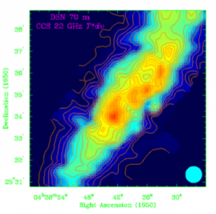 For this reason, Eric Herbst and members of his group from the University of Virginia participated in an international collaboration with Brett Mcguire et al., which set out to determine the type and prevalence of PAHs in the cold dark interstellar cloud known as the Taurus Molecular Cloud (TMC-1) (Fig. 3) by utilizing radio astronomy with stacking and matched filtering analysis. TMC-1, an interstellar cloud relatively near to the earth, is well-known as a source of organic molecules.