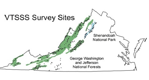 The Virginia Trout Stream Sensitivity Study (VTSSS) is designed to track the effects of acidic deposition and other factors that determine water quality and related ecological conditions in Virginia’s native trout streams.