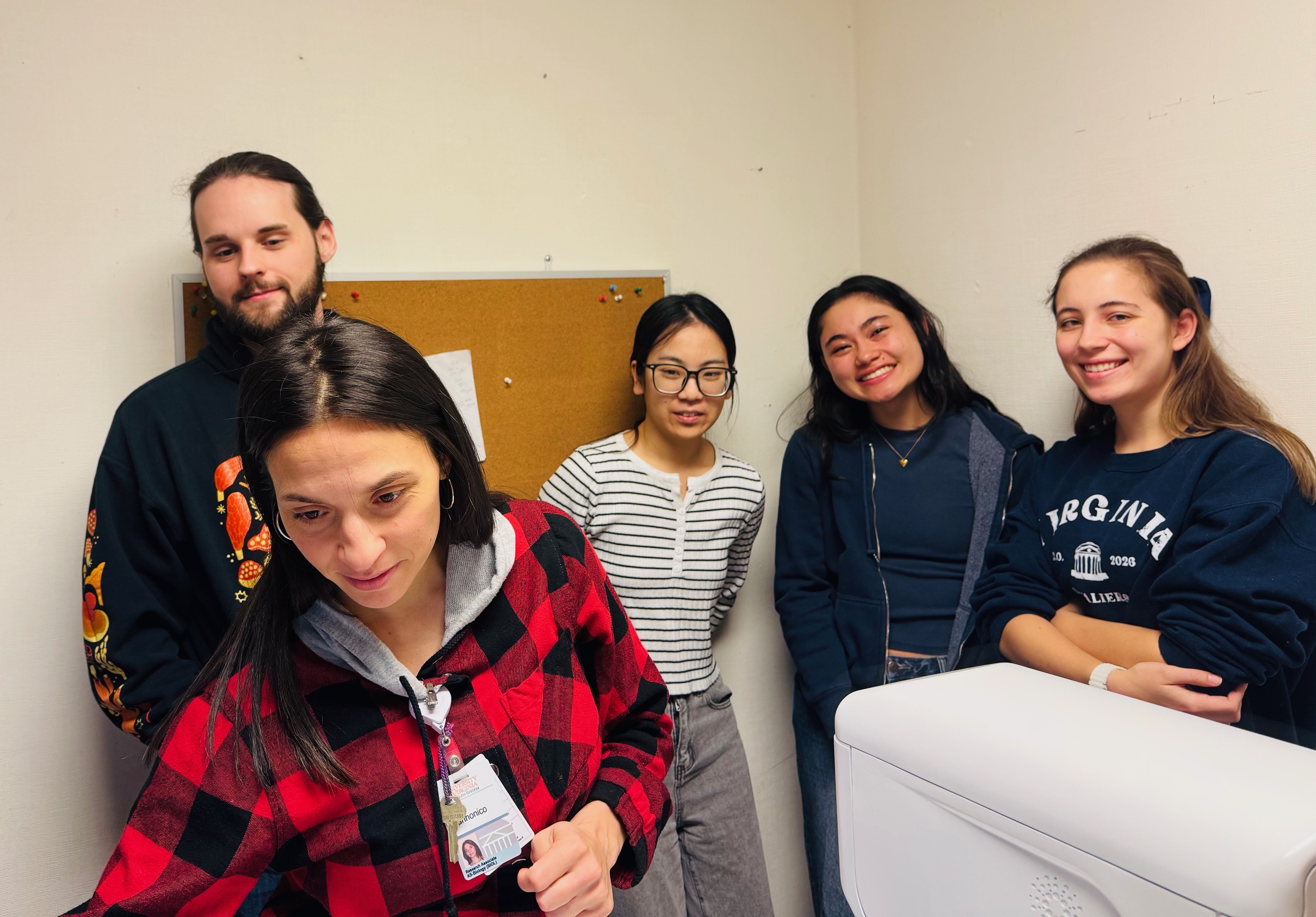 March 22, 2024, The Nu Rho Psi Honor Society's UVA chapter organized a Neuroscience field trip for 8th graders at Peabody School. The students visited our Neuroscience labs in Gilmer Hall and conducted sheep brain dissections. Xiaorong has been serving as the faculty adviser for the UVA chapter. The UVA Parents Program and the College Council have supported the event.